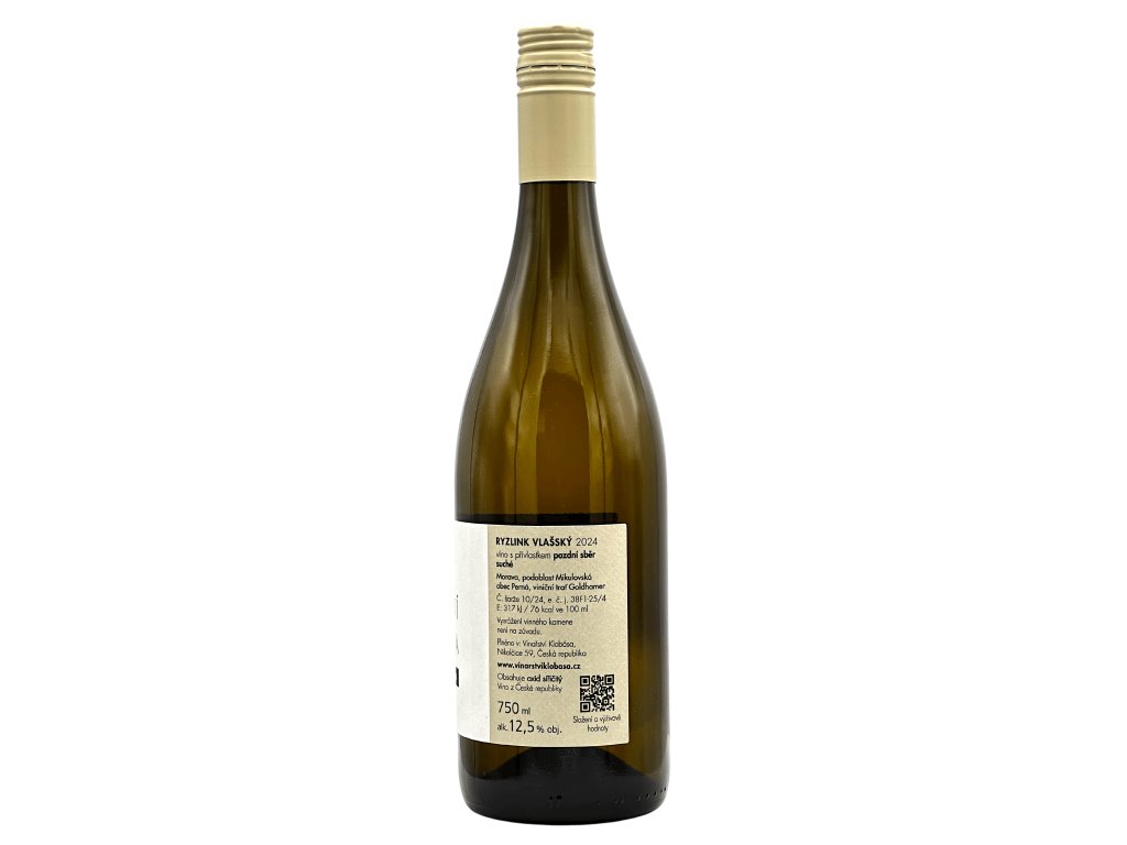Ryzlink vlašský 2024 pozdní sběr, KLOBÁSA - bílé víno, suché